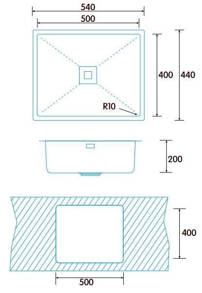 • Fregadero Cata RS 1 X   A, Sobre Encimer