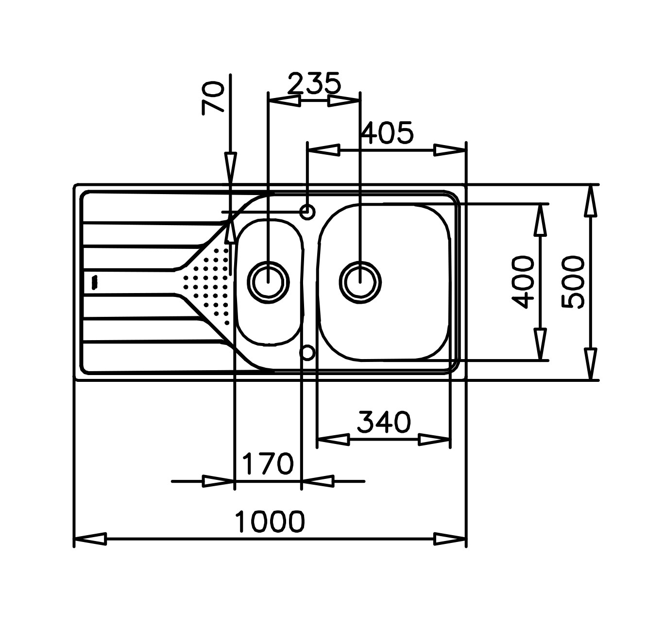 Dimensiones de segundo tazón A x L 170 x 320 mm