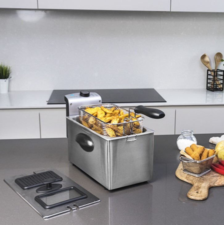 Contenido del paqueteOutside housing. Lacquered inner pot. Cover with glass and anti-odour filter. OilCleaner filter. Instruction manual. Frying basket.