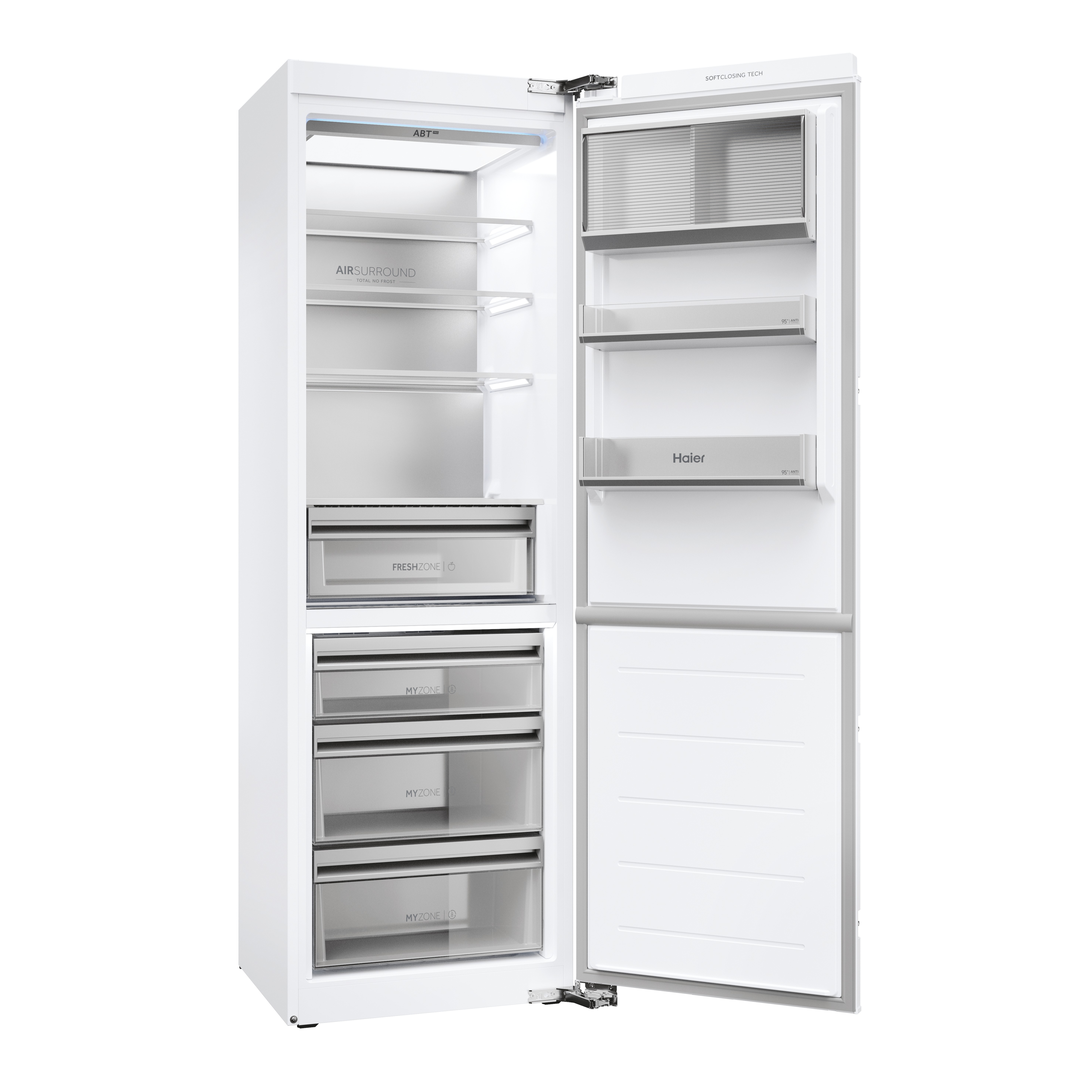 Haier HMLT7518EWF. Capacidad neta total: 278 L. Bisagra para puerta: Derecho. Clase climática: SN-T, Nivel de ruido: 35 dB. Frigorífico, capacidad neta: 175 L, Antiescarcha (nevera), Luz interior de la nevera, Frigorífico, número de compartimentos: 4, Número de compartimientos para verduras: 1. Congelador, capacidad neta: 103 L, Antiescarcha (congelador). Compartimiento de zona fresca. Clase de eficiencia de energía: E, Consumo de energía anual: 155 kWh. Color del producto: Blanco