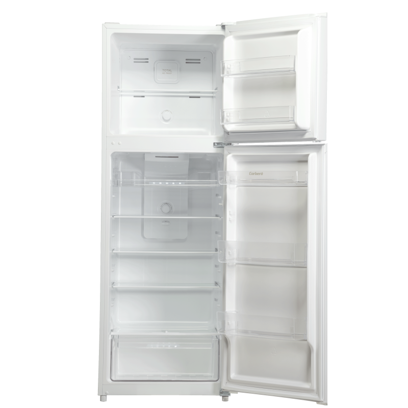 Frig 2p Corbero CF2PH17024NFW, 334L, No Frost, Color Blanco, Luz LED, Crisper, Fresh Box, Balcones Ajustables, Estantes de Cristal, Huevera, 41 Db, Eficiencia Energética E, 665x605x1700 mm.