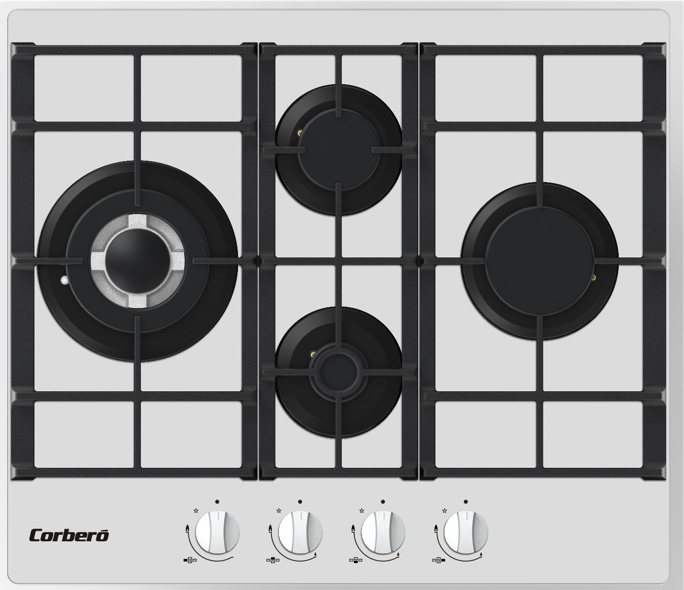 Corbero CPCGM4F4122W, Blanco, Integrado, 60 cm, Encimera de gas, Vidrio, 4 zona(s)