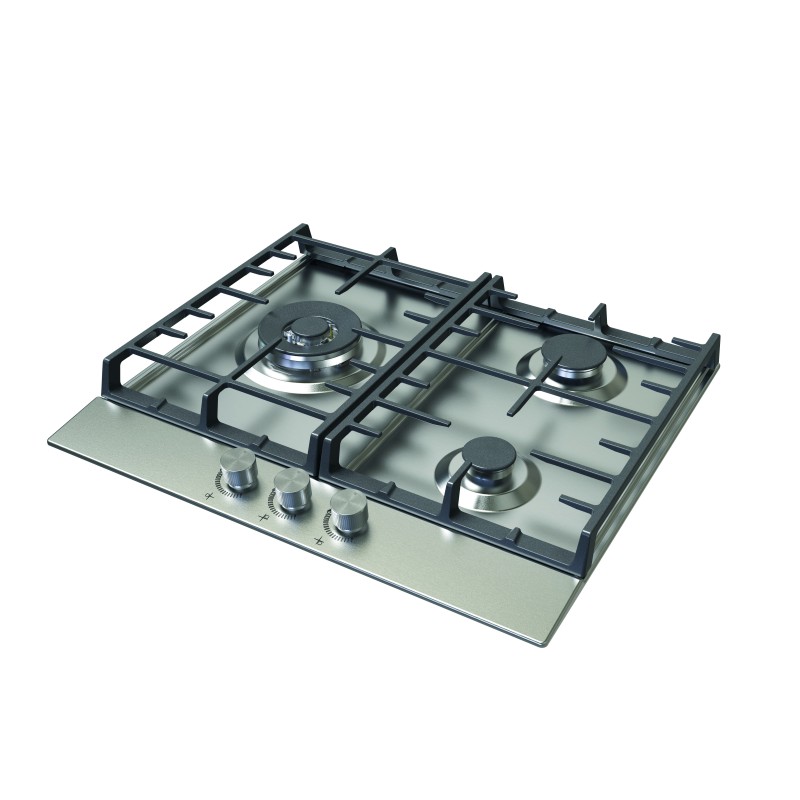 Placa Edesa EGX6031TITRCIB, gas natural/ butano con 3 quemadores/ 2 parrillas independientes sobre superficie de acero inoxidable/ Un quemador triple corona (4kW), uno rápido y uno auxiliar/ Mandos frontales/ Encendido electrónico integrado en mando/ Sist