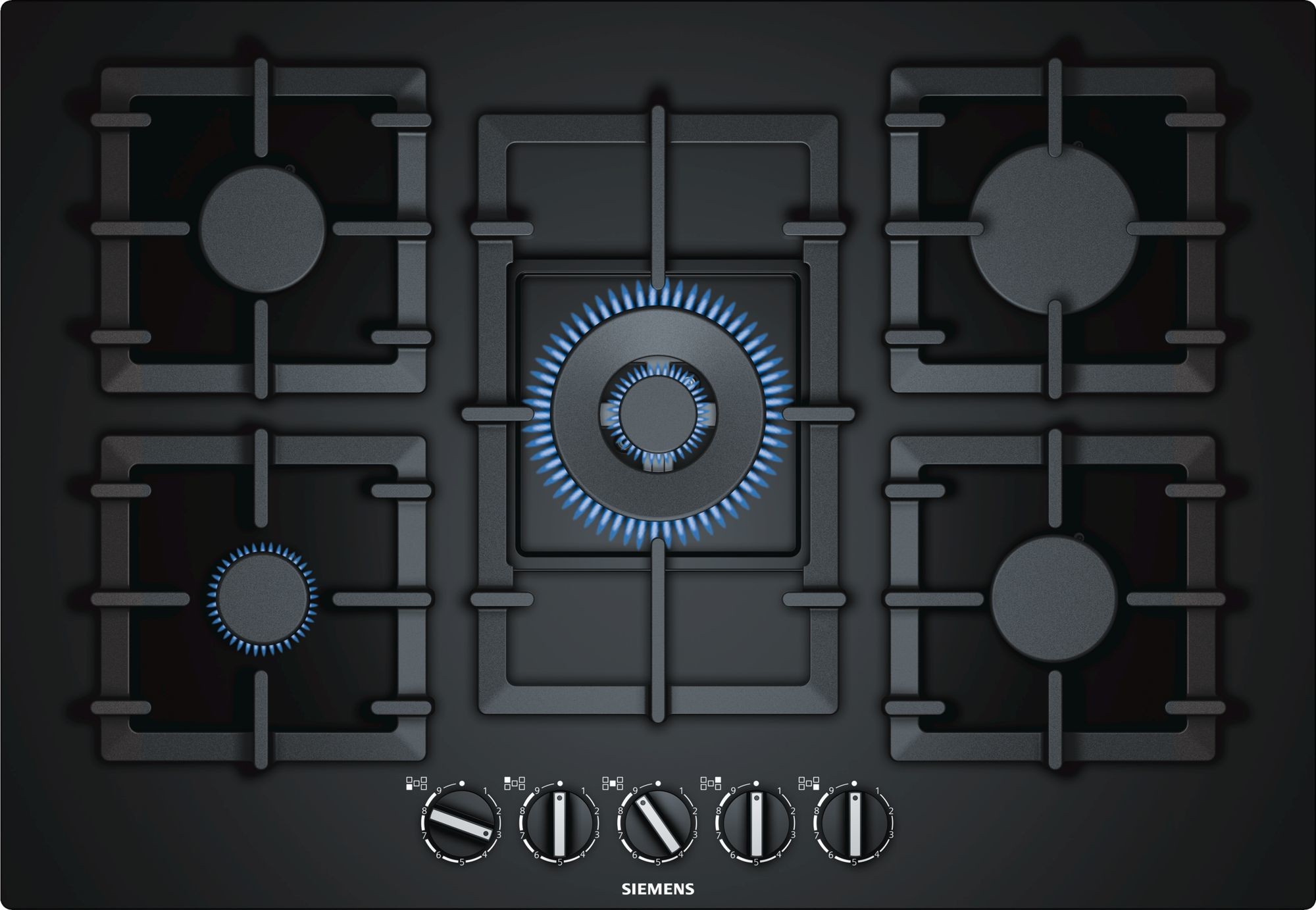 Siemens EP7A6QB90, Negro, Integrado, Encimera de gas, Hierro fundido, 5 zona(s), 5 zona(s)