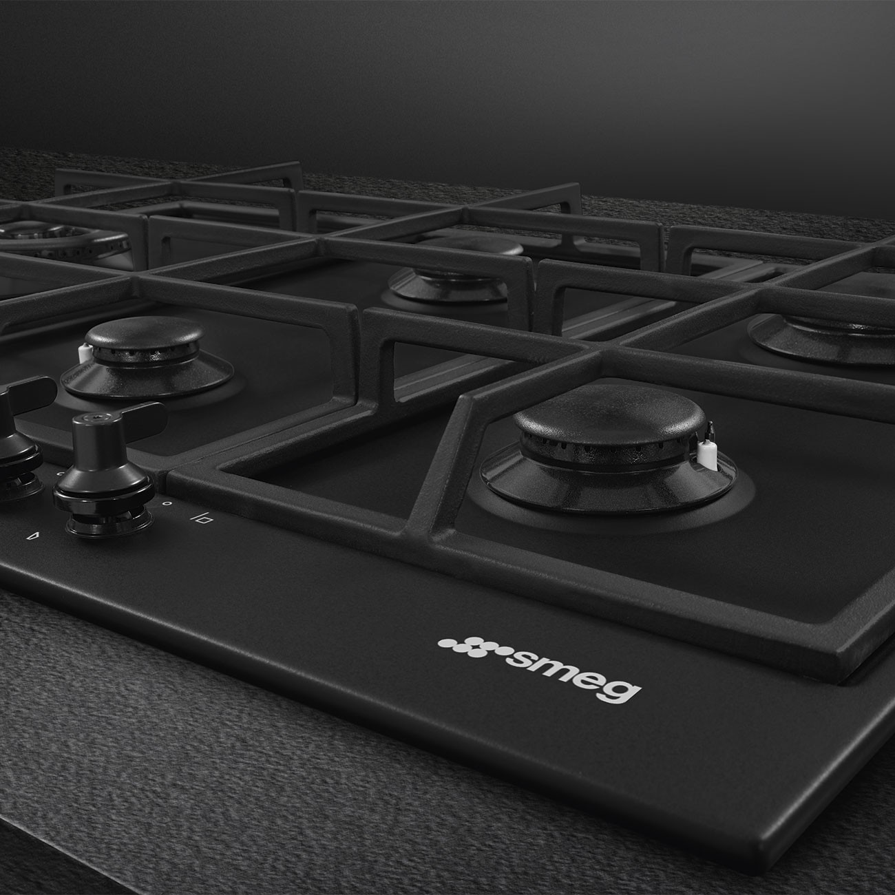 Placa Smeg PX175, Gas, Estética Línea, Acero inoxidable, 70/75 cm, Número total de zonas de cocción: 5, Instalación: Tradicional, 725x510x40