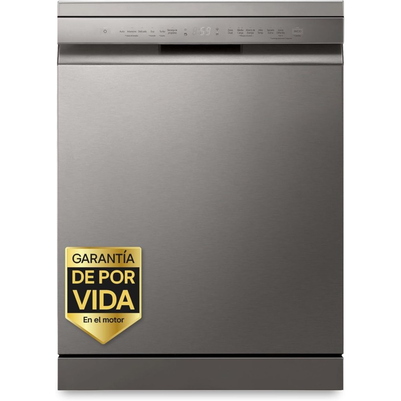 Lavavajillas LG DF355FP, 60cm quadwash, serie 350,clasificación C, inox antihuella, 3º bandeja, cesto easyrack, thinQ, apertura automatica, 10 años garantia