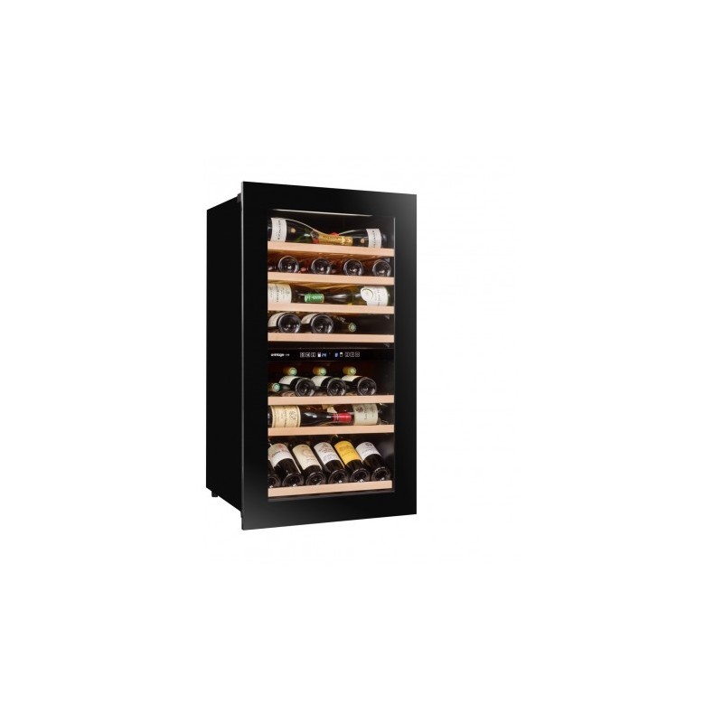 Vinoteca INT Siemens KU21WAHG0, integrable bajo encimera, G, Integrable, 82x60x58 cm., 120 l., cristal negro/transparente, 2 zonas de temperatura. Protección UV. Bandejas de madera de roble