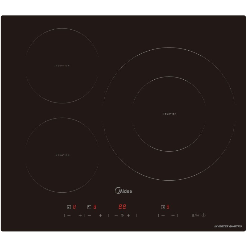 Induccion Midea MIH740T467K0, 60 cm, 3 Zonas (1 x 32cm + 2 x 18cm), 7400W, Negro, Control Tactil, 9 niveles de potencia