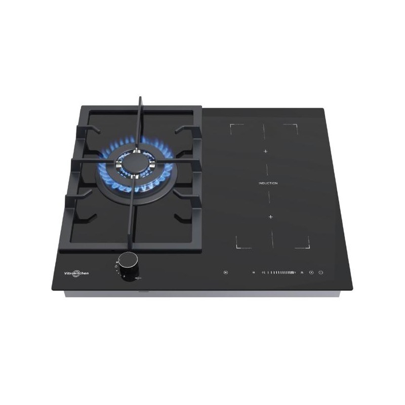 Placa Electrolux KDI641723K, 4 zonas: 2 quemadores - 7 y 10 cm - y 2 zonas inducción Puente - 18 y 10 cm, Sin Marco, 60 cm, Mandos Gas StepPower (9 níveles) y Inducción +/- (9 níveles), Sistema de seguridad, Autoencendido electrónico, Apta para gas natura
