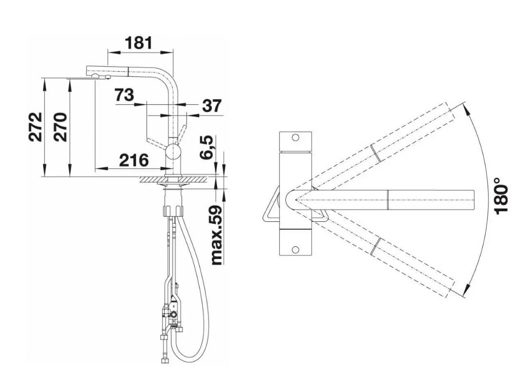 Grifo Teka IN 024 CROMO, fregadero tipo mural con caño giratorio fundido de fácil limpieza y aireador anticalcáreo