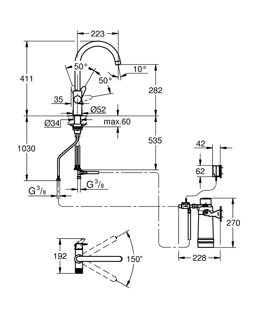Grifo Teka IN 024 CROMO, fregadero tipo mural con caño giratorio fundido de fácil limpieza y aireador anticalcáreo
