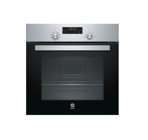 Horno Balay 3HB2031X0, Multifunción, A, Encastrable, 60 cm., 66 litros, 7 F., Aqualisis, Ap. Abatible, Acero inoxidable, Reloj electrónico con programación de inicio y paro, Raíles 1 nivel, Mandos ocultables.