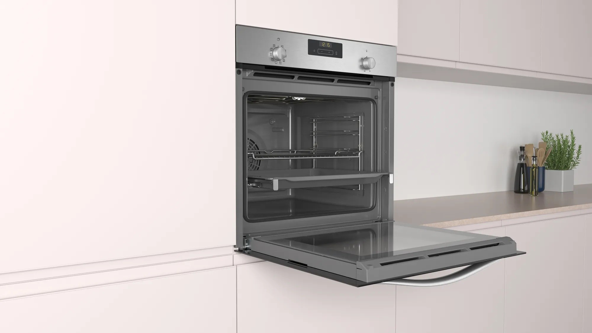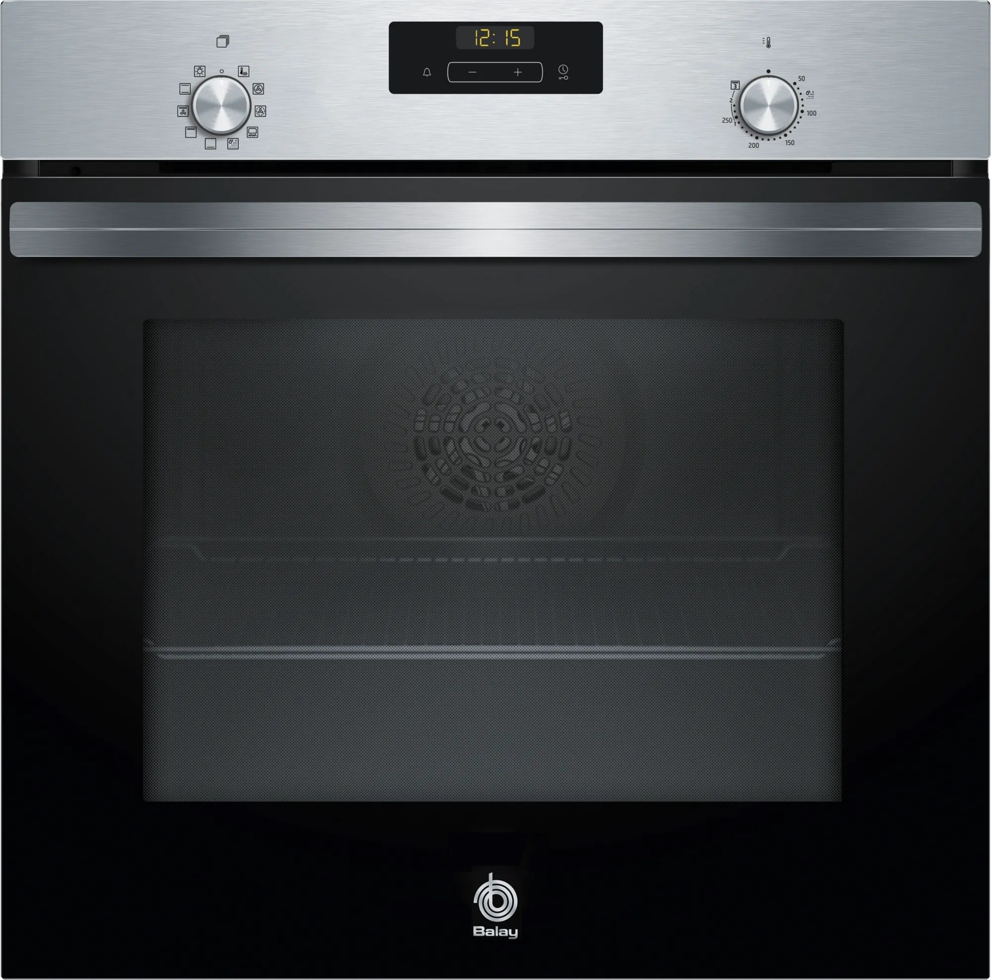 Horno Balay 3HB4131X2, Multifunción, A, Encastrable, 60 cm., 71 l., 7 F., Aqualisis, Ap. Abatible, Acero inoxidable, Control Comfort, Reloj electrónico con programación de inicio y paro, Raíles 1 nivel, Mandos ocultables.
