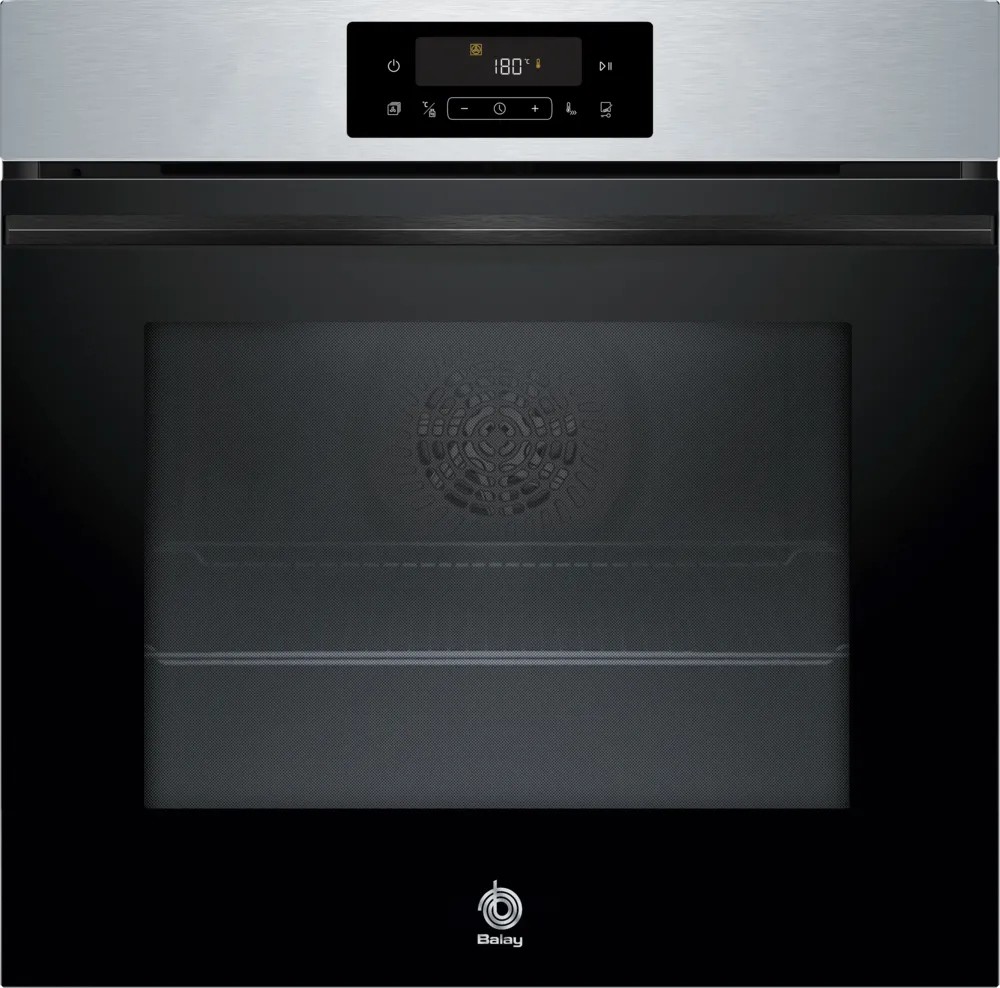 Horno Balay 3HD4821X3 , Multifunción con función vapor y f.freidora de aire, A+, Encastrable, 60 cm., 71 litros, 8 F., Pirólisis y Aqualisis, Ap. Abatible, Cristal negro/inox., Control táctil, 10 recetas, Raíles 1 nivel, mandos ocultables