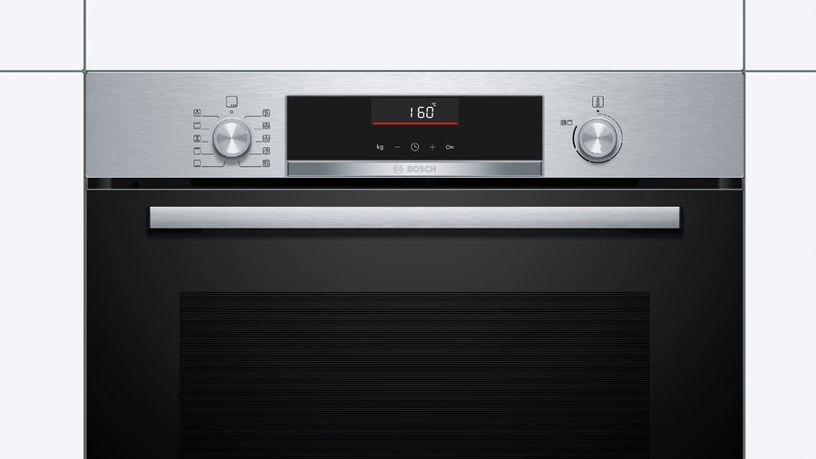 Horno Bosch HBB536BS0, Multifunción, A, Encastrable, 60 cm., 71 l., 7 F, Asistente de limpieza, Puerta extraíble, Cristal negro/inox, Display LCD, Gourmet 10 recetas, Reloj electrónico con programación de inicio y paro, 1 clipRail, Mandos ocultables, Temp