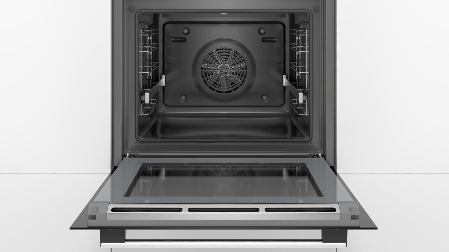 Horno Bosch HBG5780S0, Multifunción, A, Encastrable, 60 cm., 71 l., 10 F, Pirólisis & Asistente de limpieza, Ap. Abatible, Cristal negro/inox, Display LCD, Gourmet 30 recetas, Reloj electrónico con programación de inicio y paro, 1 clipRail, Mandos ocultab