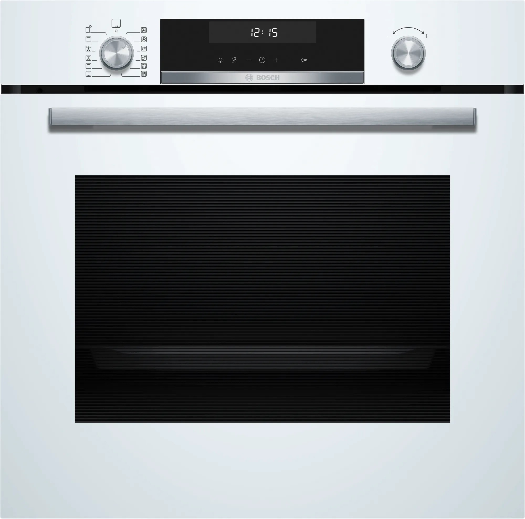 Horno Bosch HBG578EW7, Horno, Multifunción, A+, Integrable, 60 cm., 71 litros, 9 F., Pirólisis, HC, Ap. Abatible, Cristal blanco, AirFry, Display LCD, Gourmet 30 recetas, Reloj electrónico con programación de inicio y paro, Railes 1 nivel, Mandos oculta