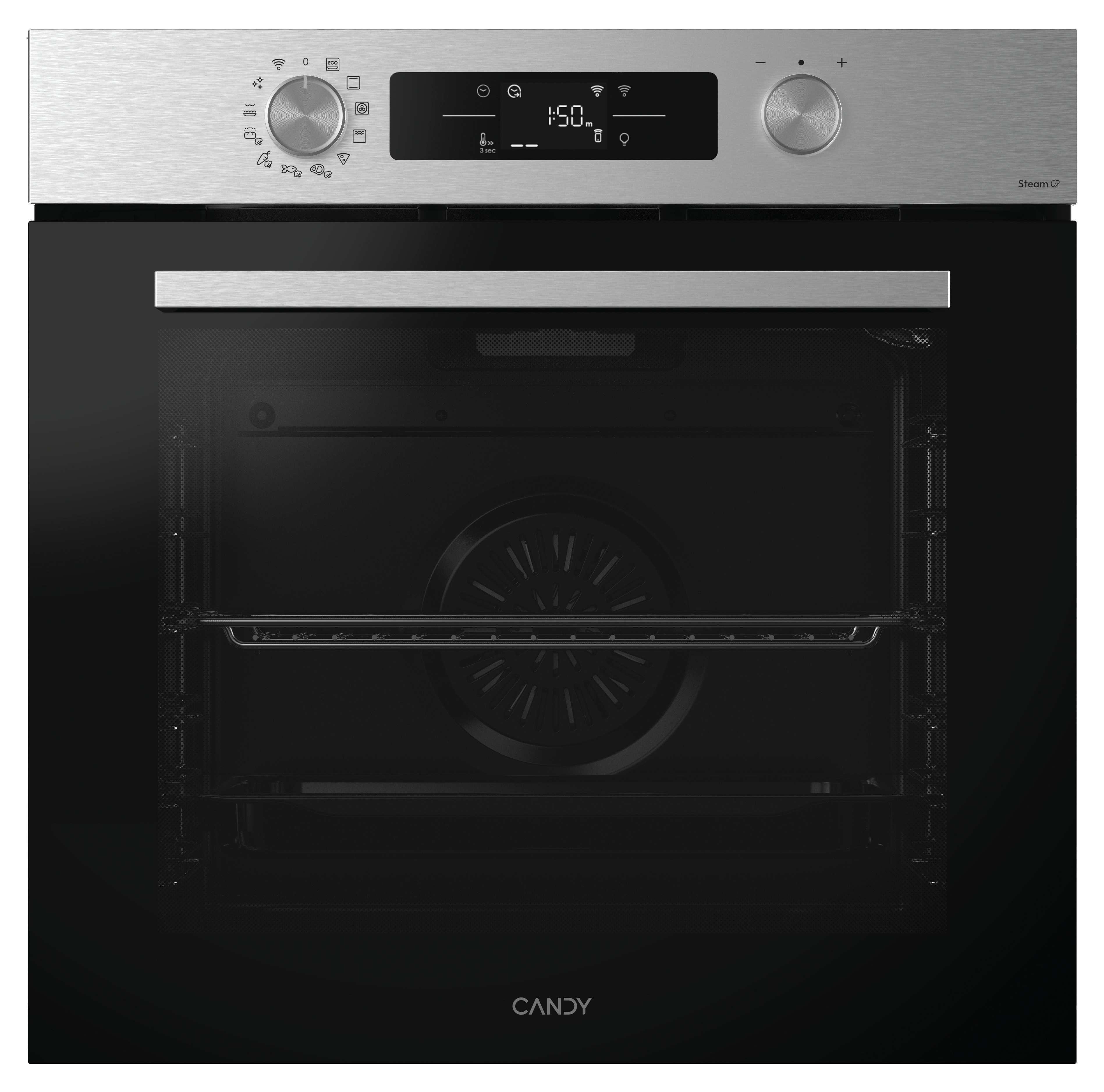 Candy CA6 N5B3EYTX. Tamaño del horno: Grande, Tipo de horno: Horno eléctrico, Total capacidad interior, horno (s): 78 L. Tipo de instalación: Integrado, Color del producto: Negro, Acero inoxidable, Tipo de control: Giratorio, Tocar. Tipo de temporizador: Digital, Aplicaciones de control compatibles: hOn. Consumo de energía (convencional): 0,99 kWh, Consumo de energía (convección forzada): 0,54 kWh, Escala de eficiencia energética: A+++ a D. Cantidad de lámparas: 1 lámpara(s)