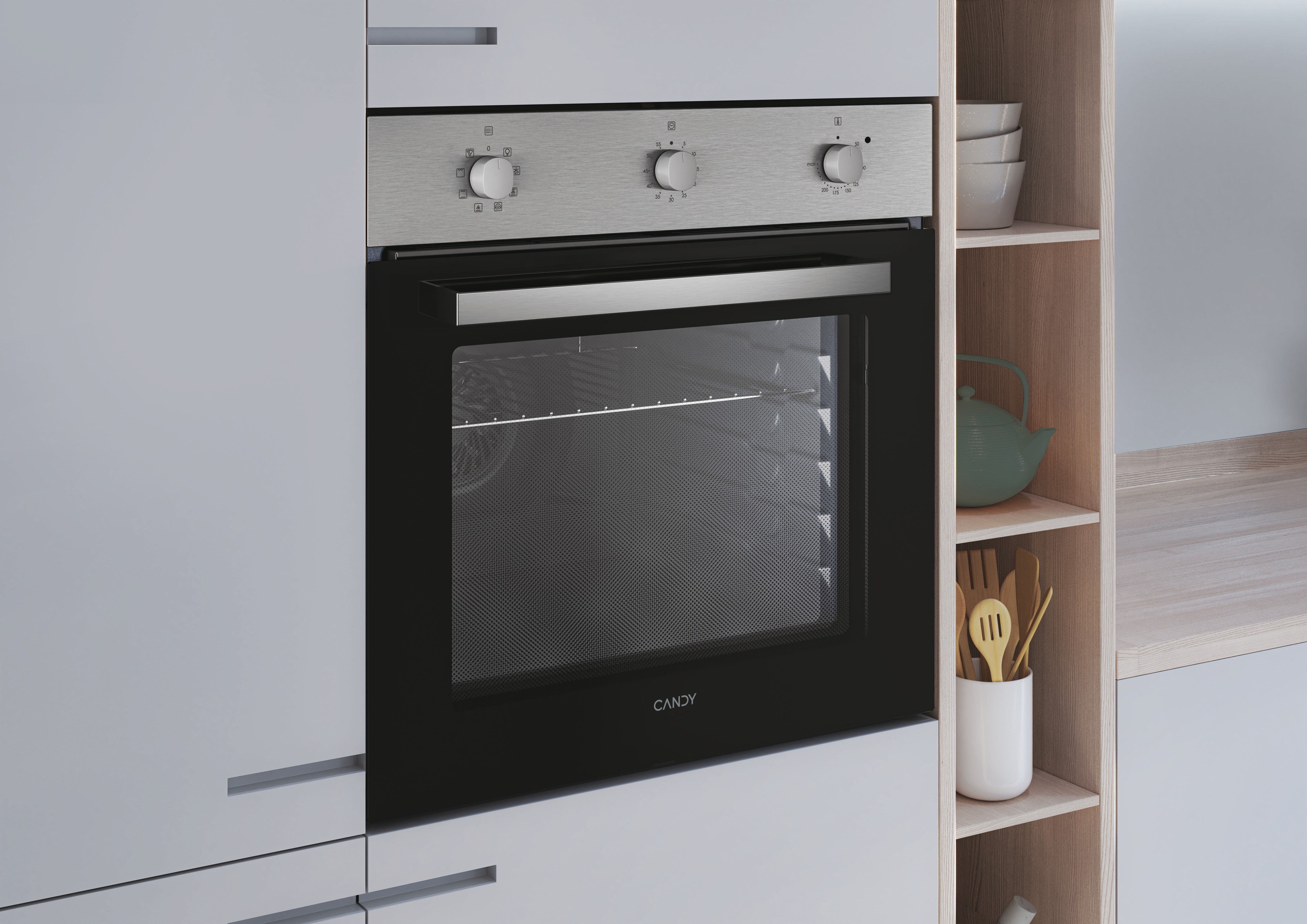 Candy Idea FIDC X602/CA. Tamaño del horno: Medio, Tipo de horno: Horno eléctrico, Total capacidad interior, horno (s): 65 L. Tipo de instalación: Integrado, Color del producto: Acero inoxidable, Tipo de control: Giratorio. Tipo de temporizador: Mecánico, Aplicaciones de control compatibles: hOn. Clase de eficiencia de energía: A+, Consumo de energía (convencional): 0,98 kWh, Consumo de energía (convección forzada): 0,67 kWh. Ancho de compartimiento de instalación: 56 cm, Profundidad del compartimiento de instalación: 56 cm, Altura del compartimiento de instalación: 58,5 cm