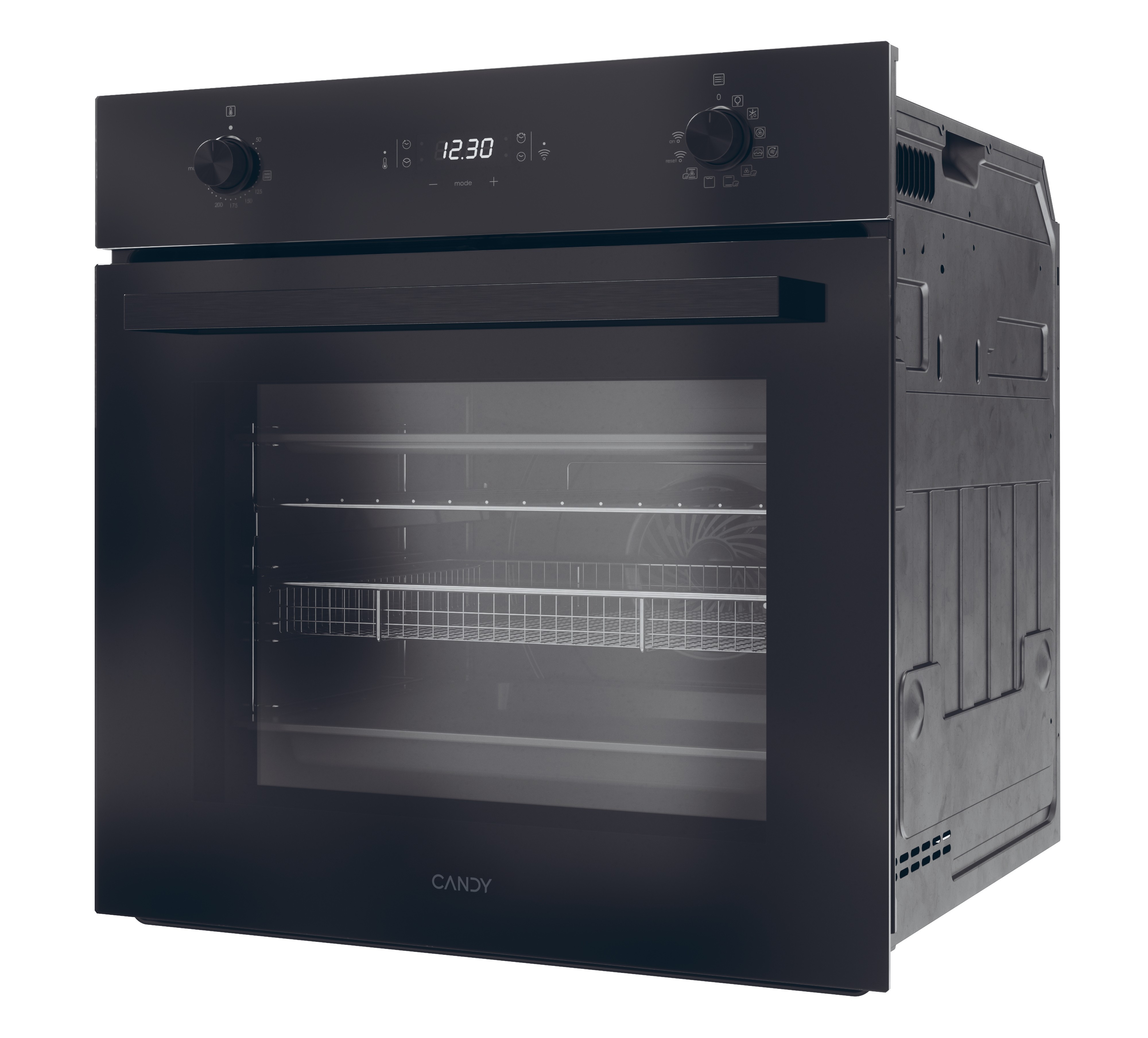 Candy FMBC A825S E0. Tamaño del horno: Medio, Tipo de horno: Horno eléctrico, Total capacidad interior, horno (s): 70 L. Tipo de instalación: Integrado, Color del producto: Negro, Tipo de control: Giratorio. Tipo de reloj: Electrónico, Tipo de temporizador: Digital, Aplicaciones de control compatibles: hOn. Consumo de energía (convencional): 0,98 kWh, Consumo de energía (convección forzada): 0,68 kWh, Escala de eficiencia energética: A+++ a D. Ancho de compartimiento de instalación: 56 cm, Profundidad del compartimiento de instalación: 56 cm, Altura del compartimiento de instalación: 59 cm