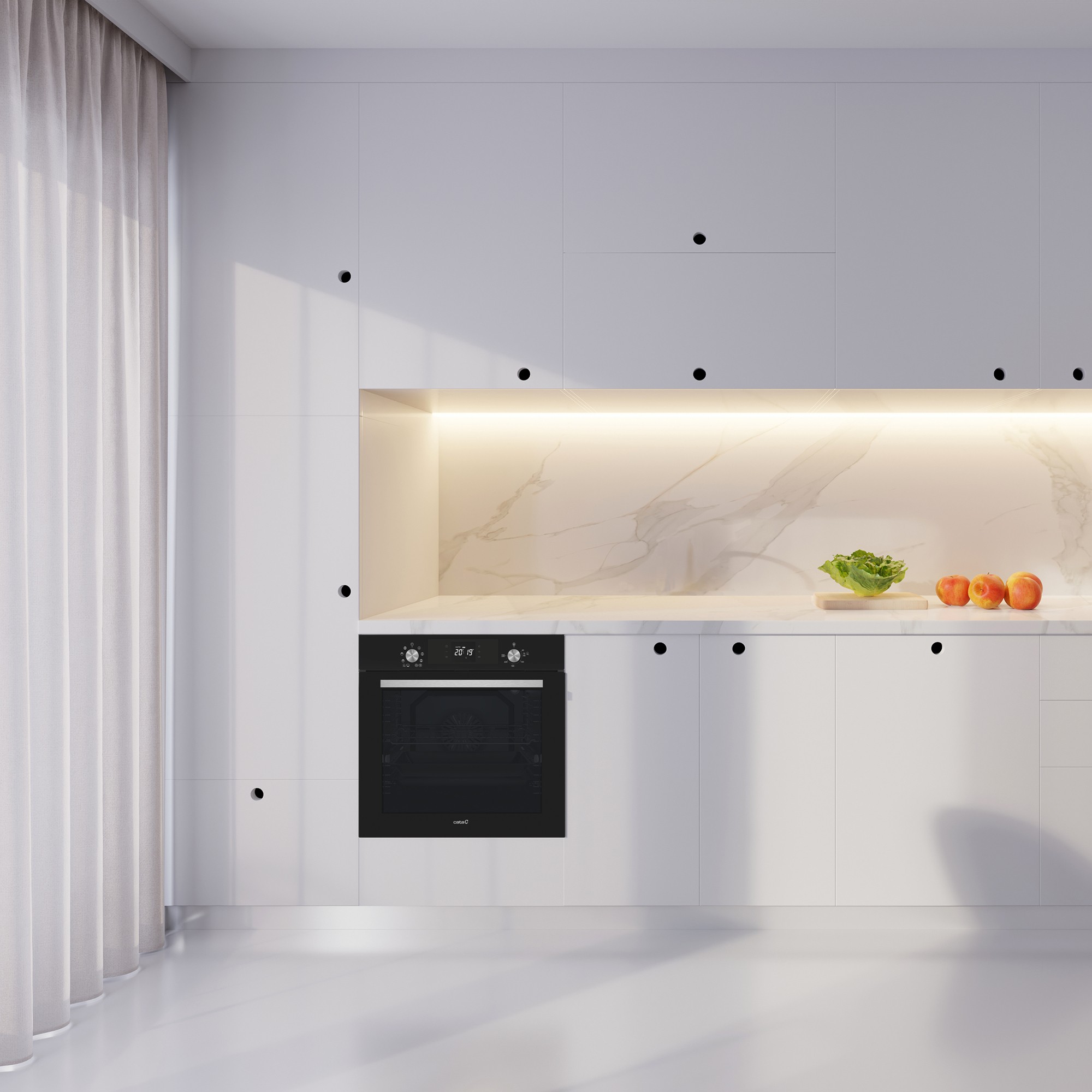 CATA MDS 8008 BK. Tamaño del horno: Grande, Tipo de horno: Horno eléctrico, Total capacidad interior, horno (s): 80 L. Tipo de instalación: Integrado, Color del producto: Negro, Tipo de control: Giratorio, Tocar. Tipo de reloj: Electrónico. Consumo de energía (convencional): 0,85 kWh, Consumo de energía (convección forzada): 0,84 kWh, Escala de eficiencia energética: A+++ a D. Ancho de compartimiento de instalación: 56 cm, Profundidad del compartimiento de instalación: 55 cm, Altura del compartimiento de instalación: 59 cm