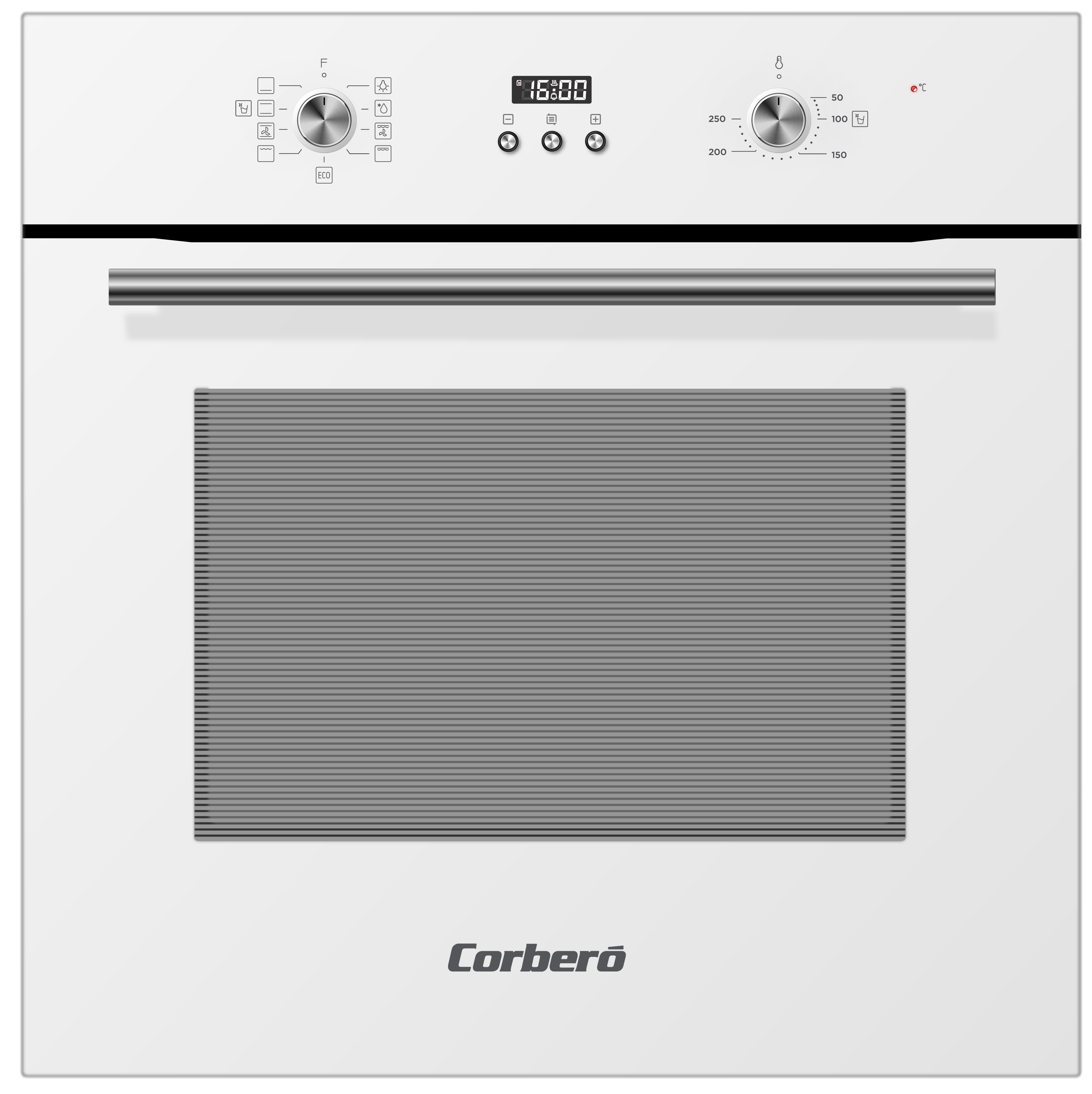 Horno Corbero CCHMD803W, 70 litros, Cristal Blanco, Hidrólisis,Multifunción, Display Digita litros, 8 Prog., Guías Extraíbles, Luz Interior, Puerta Doble Crista litros, 3000W Potencia, A, 595x575x595 mm.