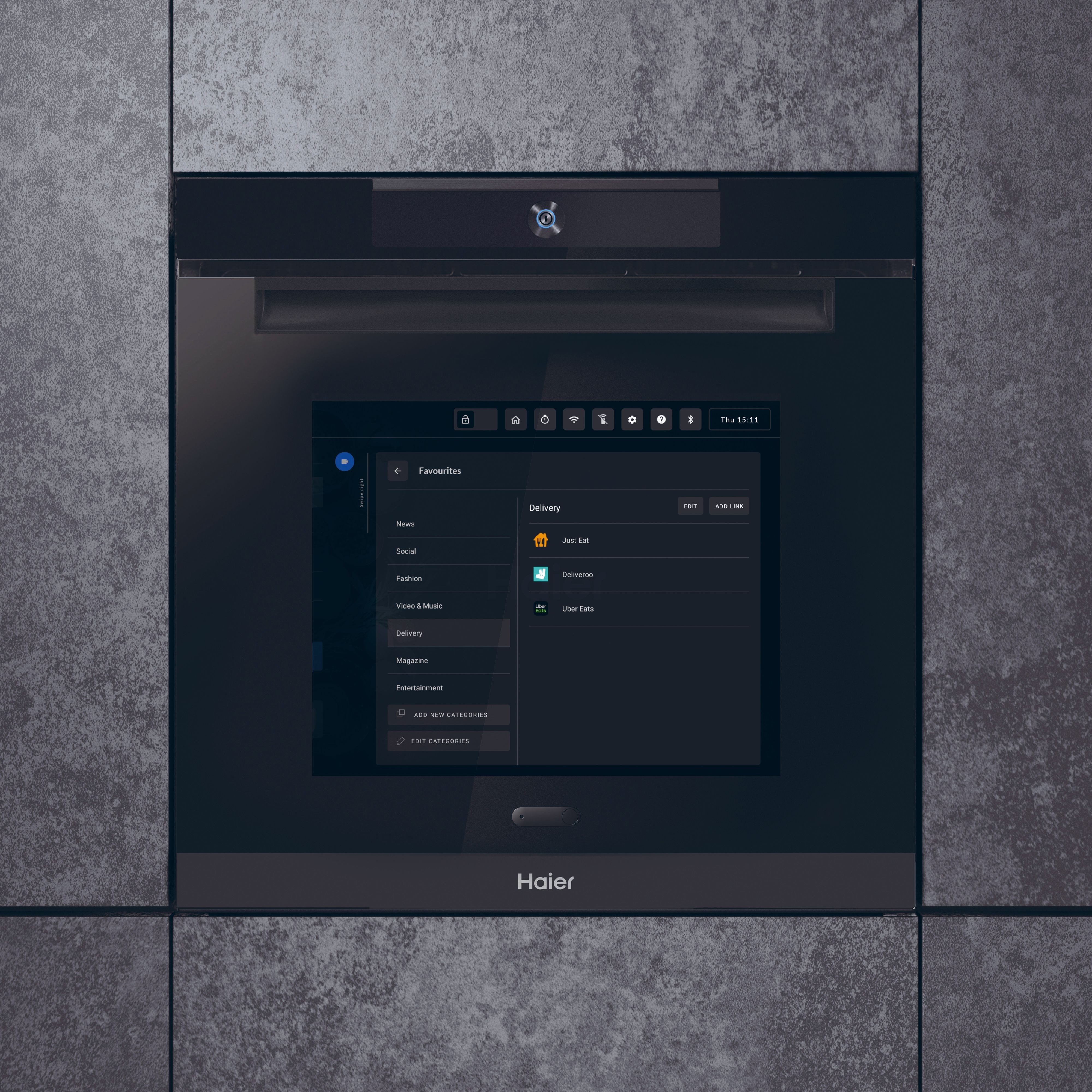 Haier Chef@Home Series 6 HWO60SM6C1BH. Tamaño del horno: Grande, Tipo de horno: Horno eléctrico, Total capacidad interior, horno (s): 80 L. Tipo de instalación: Integrado, Color del producto: Negro, Tipo de control: Tocar. Tipo de reloj: Electrónico, Aplicaciones de control compatibles: hOn, Tipo de sonda de horno: Inalámbrico. Consumo de energía (convencional): 1,1 kWh, Consumo de energía (convección forzada): 0,85 kWh, Escala de eficiencia energética: A+++ a D. Ancho de compartimiento de instalación: 56 cm, Profundidad del compartimiento de instalación: 56 cm, Altura del compartimiento de instalación: 59 cm