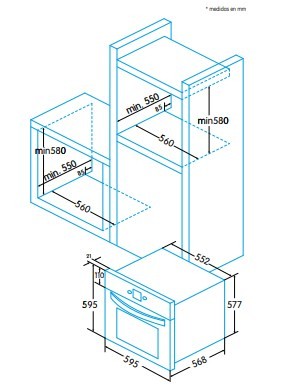 Dimensiones externas (alto x ancho x profundo): 595 x 595 x 547 mm
