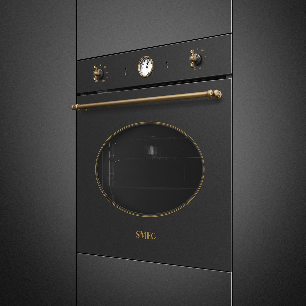 Horno Smeg SFP805AO, Colonial, 60 cm, Color Antracita, Termoventilado, Sistema de limpieza: Pirolítico, Número de funciones de cocción: 7, N.° de mandos: 2, 592x597x548, A