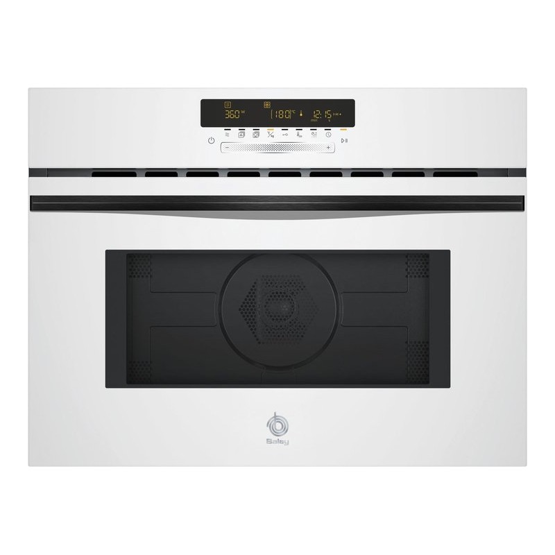 Microondas Balay 3CW5179B3, Multifunción con aire caliente, Encastrable, 45 cm., 44 Litros, 5 F., Aqualisis, Ap. Abatible, Cristal Blanco, Control táctil Deslizante, 15 recetas, Programación Electrónica de paro, sin plato giratorio, con Grill.