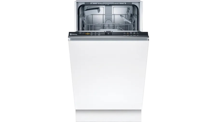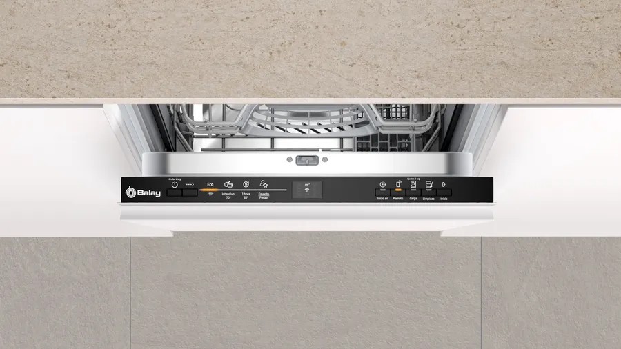 Lavav INT Balay 3VT4031NA, E, Totalmente integrable, 81,50x45 cm, 10 servicios, HC, Negro, 8,9 l, 46 dB, InfoLight, Indic. Lumin. y selec. directa de funciones, 4 progr. (Eco/Int./1h/Fav.), 3 opc. (½carga/Limp. Cuba), cuba acero