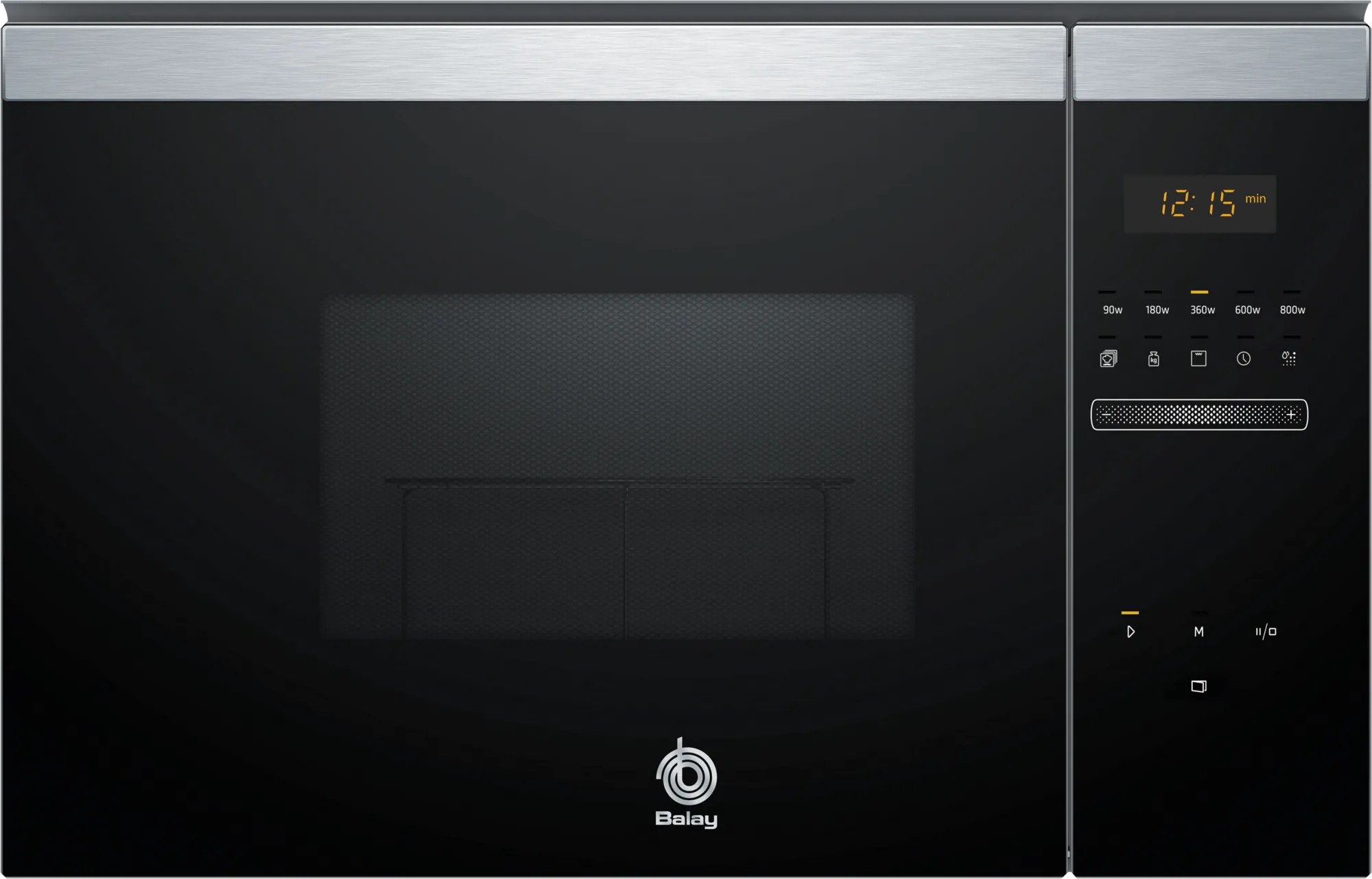Microondas Balay 3CG4172X2, electrónico, Encastrable sin marco, 38 cm., 20 litros, 5 F., Aqualisis, Ap. lateral izquierda, Cristal negro / Acero inoxidable, Control Deslizante, 8 recetas, Programación electrónica de paro, Plato giratorio 25,5 cm., Con gr