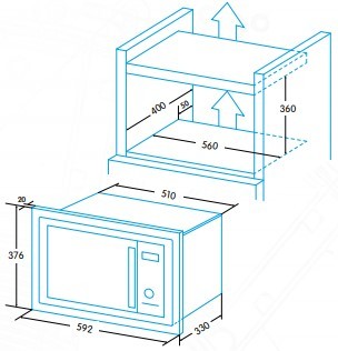 Microondas de encastre de 20 litros, 700W y con grill 1000W