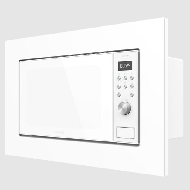 Cecotec 01378. Tipo de instalación: Integrado, Tipo de producto: Microondas con grill, Capacidad interior: 20 L, Potencia del microondas: 700 W, Pantalla incorporada, Tipo de control: Botones, Giratorio, Color del producto: Blanco