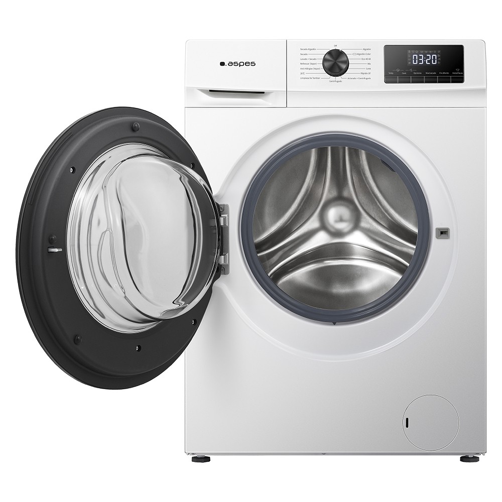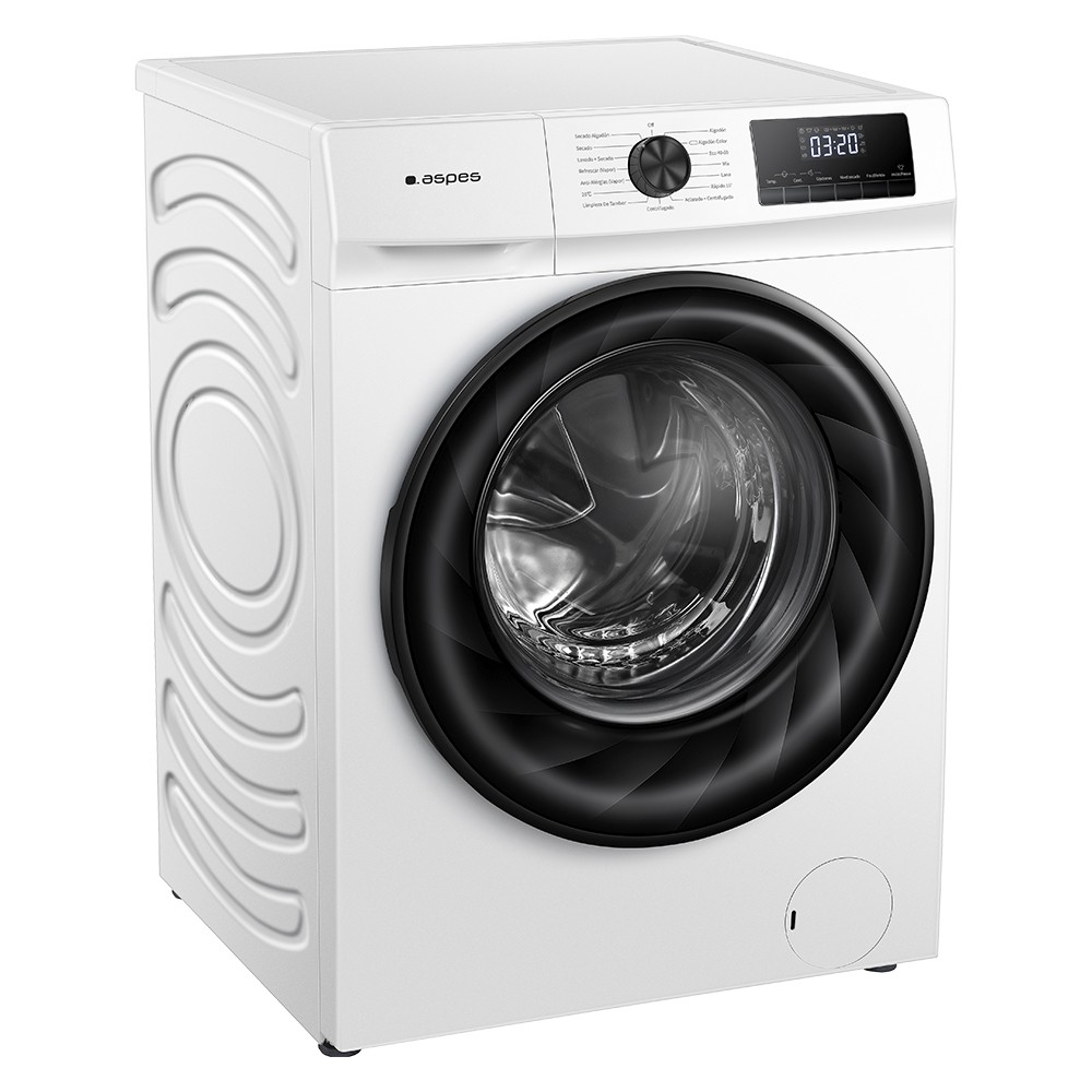 Lava-secadora 9/6kg Carga Frontal Aspes con eficiencia energética D, 1400 rpm, Motor Inverter, 15 programas, Limpieza Tambor, Anti alérgico, Chasis antivibraciones, Puerta XXL, sistema de control Display LED Manual y estética Blanca.