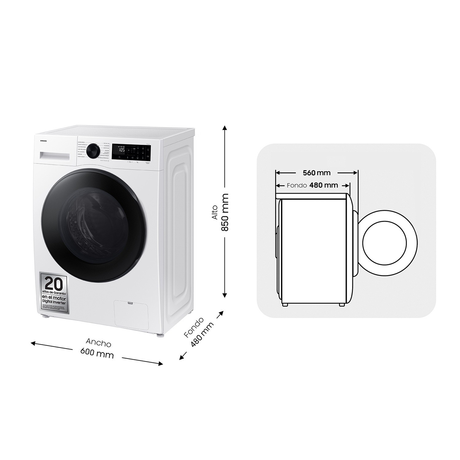 Samsung Lavasecadora con fondo reducido 9kg/5kg AI Ecobubble™ Clase E/A-10% Blanca WD90DG5G34BEEC, Carga frontal, Independiente, Blanco, Izquierda, Negro, LED