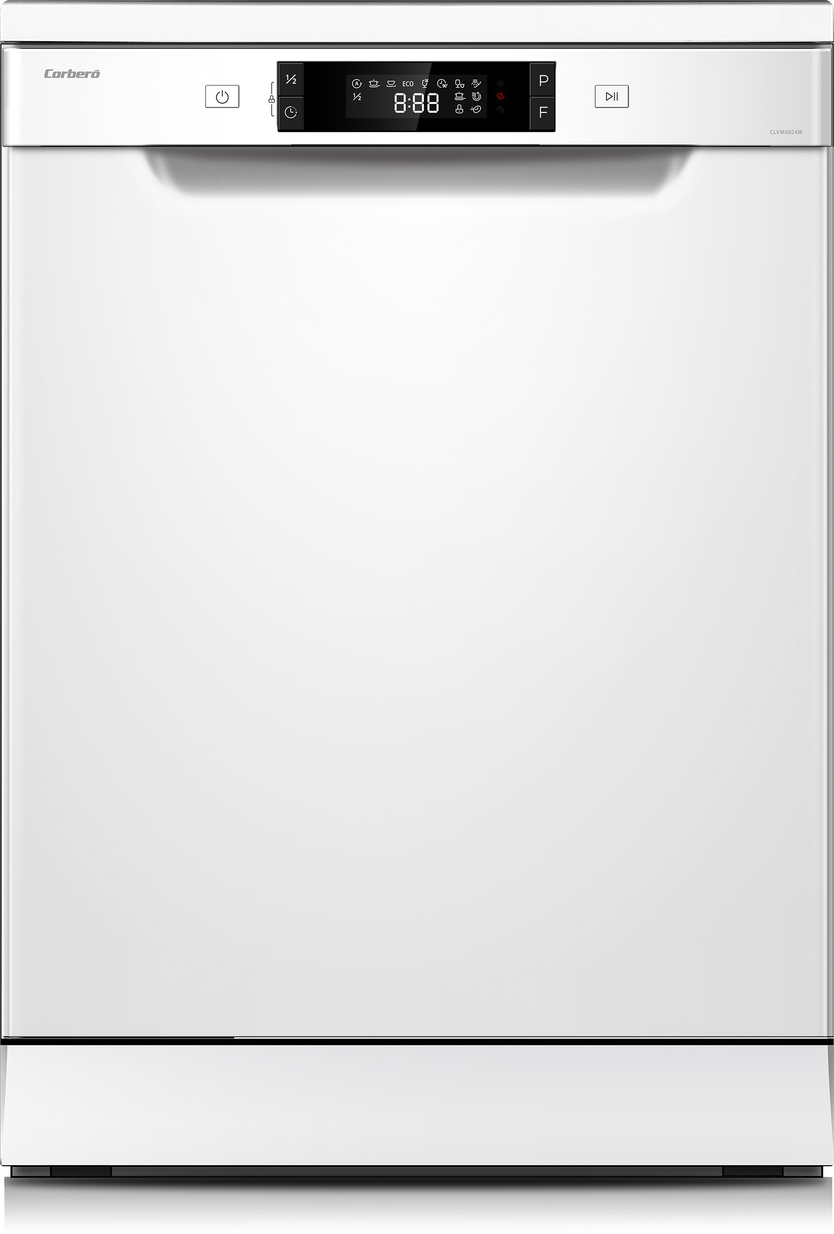 Lavavajillas Corbero CLVM6024W, 12 Cubiertos, 8 Programas Con 4 Temperaturas, Display LED, Color Blanco, Inicio Diferido, Media Carga, Función Inicio-Pausa, Cesta Superior Regulable En Altura, 49 Db, Eficiencia Energética E , 610X598X845 mm.