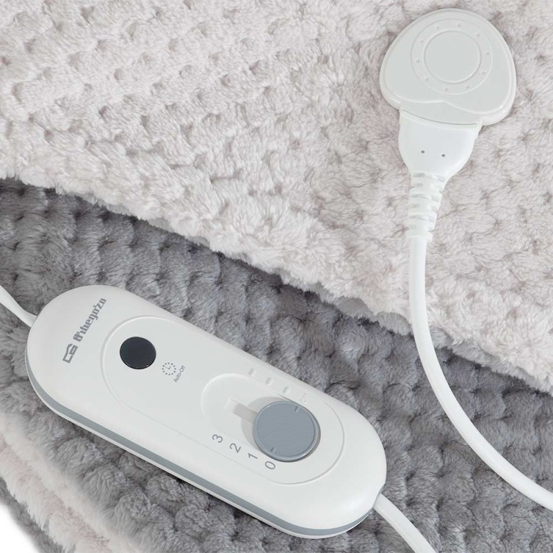 Manta electrica Orbegozo MAH2050, 120 W. Bicolor Gris Y Beige (Un Color Por Cada Cara) Proporciona Calor Beneficioso Y Persistente. 3 Niveles De Potencia. Tejido Térmico De Microfibras Alta Calidad. Superficie Suave, Transpirable Y Agradable Al Tacto. La