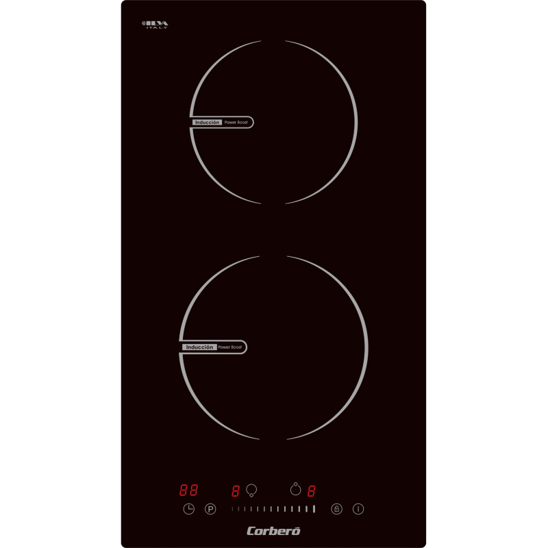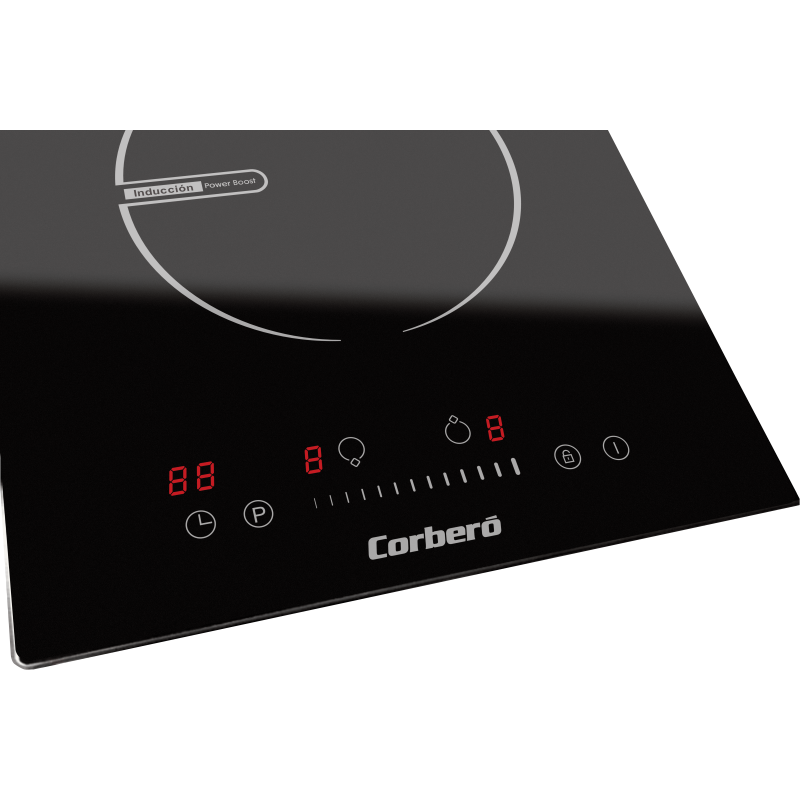 Induccion Corbero CCIG236DI, 2 Zonas, Potencia 3680W, Slider, Control Touch Control, 2 Boosters,Temporizador 99 Minutos, 9 Niveles Potencia, Desconexión Automática de Seguridad, Bloqueo de Seguridad Para Niños, Instalación Fácil, 520x290x62
