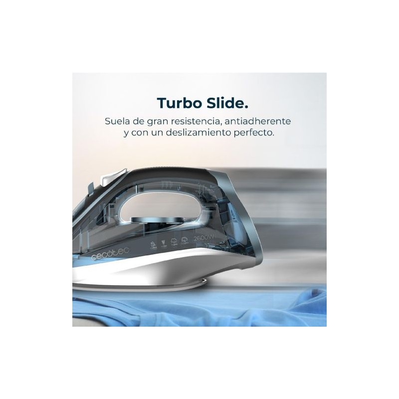 Cecotec 01870, Plancha vapor-seco, 200 g/min, Negro, Azul, Plata, Transparente, 55 g/min, 2600 W, 220 - 240 V