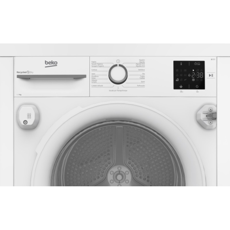 Secadora INT Beko DIHS 7414 GA0, integrable, Heat Pump Sensores, A++, 7Kg, Display digital, Inicio diferido 0-24h, Antiarrugas, Desagüe directo opcional, 84,6x59,5x50,8 cm.