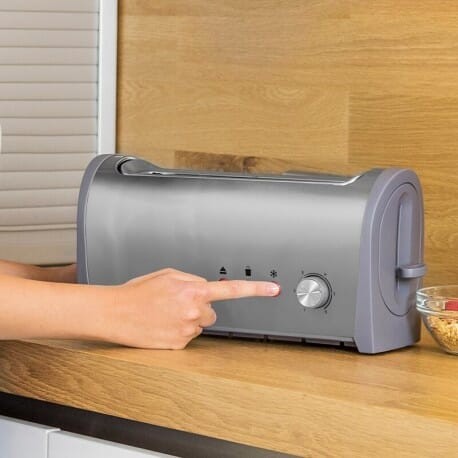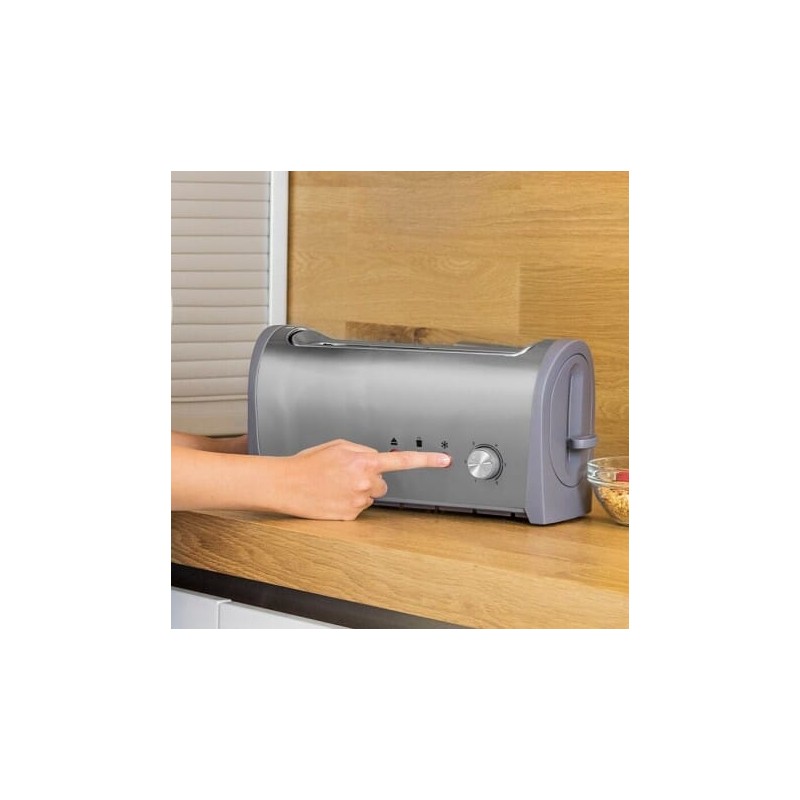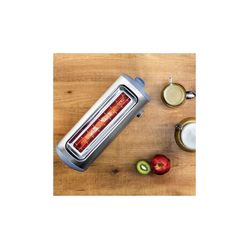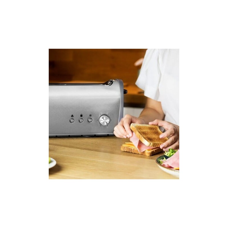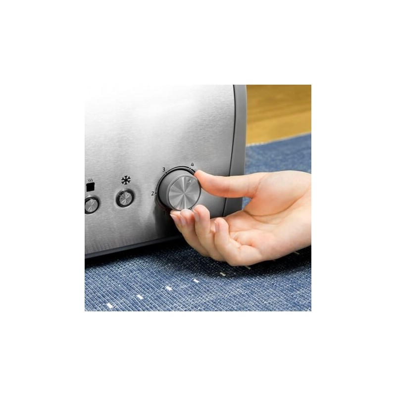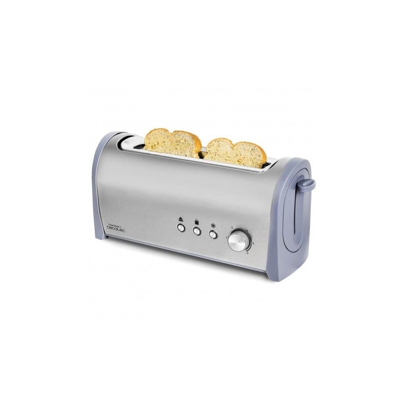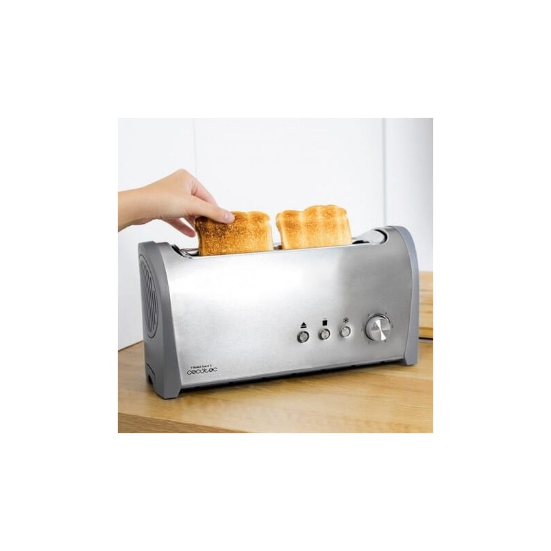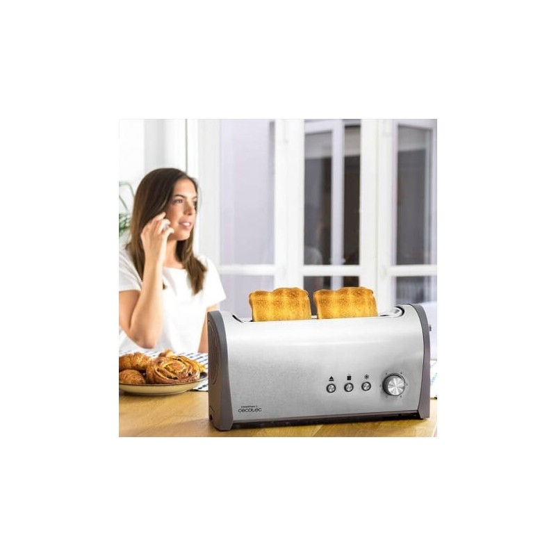Cecotec, Tostador Steel&taste Inox 1L Tostadora de pan con capacidad para dos tostadas. Incluye soporte para panecillos. 1000 W de potencia y 6 posiciones de tostado, función descongelar y función rec
