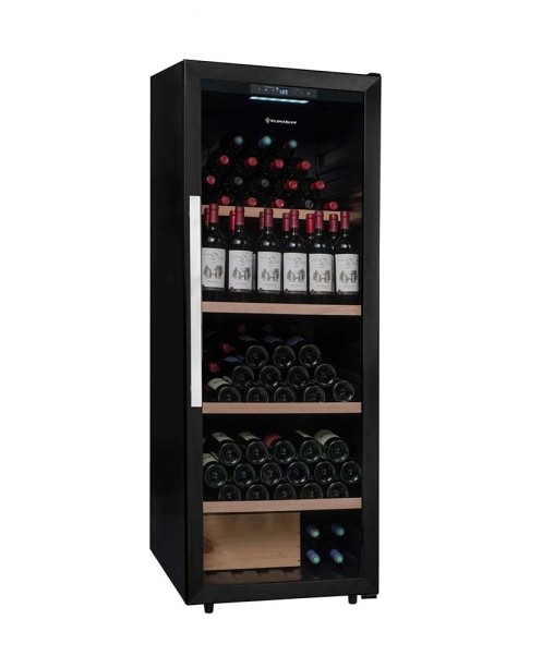 Climadiff CPW204B1. Tipo de instalación: Independiente, Color de la carcasa: Negro, Color interior: Negro. Capacidad (botellas): 204 botella(s), Tipo de producto: Nevera de vino, Rango de temperatura (zona 1): 5 - 20 °C. Tipo de control: Tocar, Ubicación de la pantalla: Interior, Tipo de lámpara: LED. Clase de eficiencia de energía: G, Consumo de energía anual: 176 kWh, Escala de eficiencia energética: De la A a la G. Ancho: 595 mm, Profundidad: 700 mm, Altura: 1588 mm