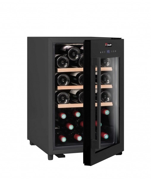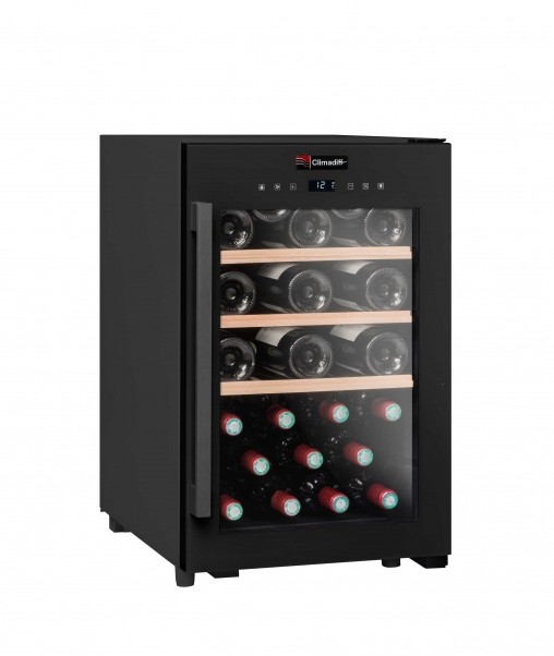 Climadiff CS31B1. Tipo de instalación: Independiente, Color de la carcasa: Negro, Color interior: Negro. Capacidad (botellas): 31 botella(s), Rango de temperatura (zona 1): 5 - 20 °C, Clase de emisión de ruido: D. Tipo de control: Tocar, Ubicación de la pantalla: En la puerta, Tipo de lámpara: LED. Clase de eficiencia de energía: G, Consumo de energía anual: 142 kWh, Escala de eficiencia energética: De la A a la G. Ancho: 400 mm, Profundidad: 540 mm, Altura: 630 mm