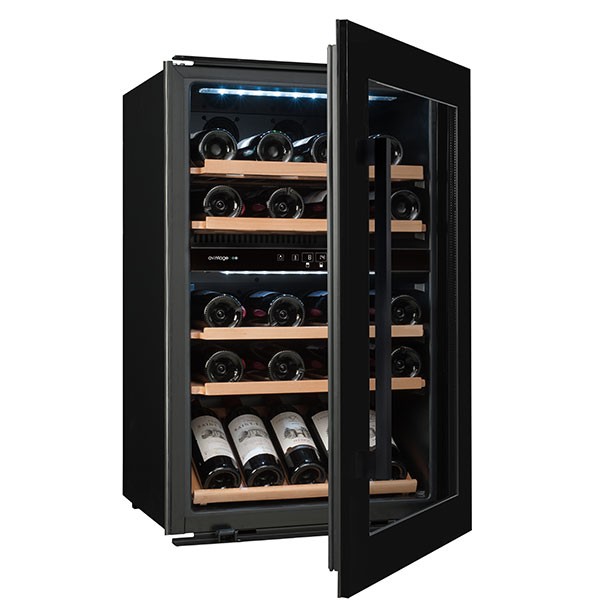 Avintage AVI48CDZA. Tipo de instalación: Integrado, Color de la carcasa: Negro, Color interior: Negro. Capacidad (botellas): 52 botella(s), Tipo de producto: Nevera de vino, Rango de temperatura (zona 1): 5 - 18 °C. Tipo de control: Botones, Ubicación de la pantalla: Interior, Aplicaciones de control compatibles: Vinotag. Clase de eficiencia de energía: G, Consumo de energía anual: 162 kWh, Escala de eficiencia energética: De la A a la G. Ancho: 595 mm, Profundidad: 556 mm, Altura: 887 mm
