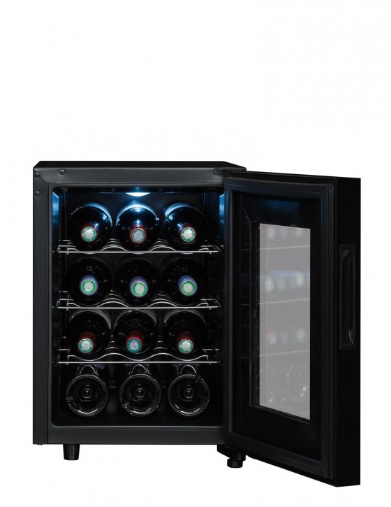 La Sommelière LS12C. Tipo de instalación: Independiente, Color de la carcasa: Negro, Color interior: Negro. Capacidad (botellas): 12 botella(s), Rango de temperatura (zona 1): 11 - 18 °C, Clase de emisión de ruido: A. Tipo de lámpara: LED. Clase de eficiencia de energía: G, Consumo de energía anual: 129 kWh, Escala de eficiencia energética: De la A a la G. Ancho: 345 mm, Profundidad: 460 mm, Altura: 480 mm